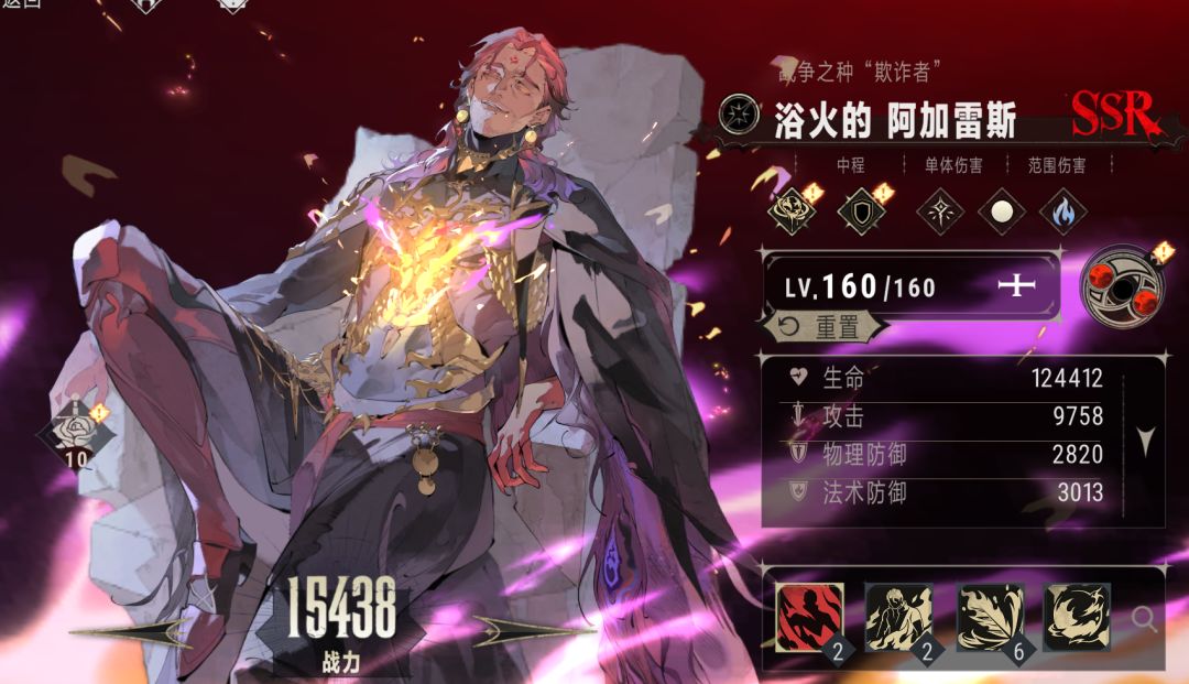 浴火的阿加雷斯:可以打持续伤害、单体爆发高、范围伤害出色,这个眷属要是能抽到并作为主核培养,同练度下强度高于范海辛。