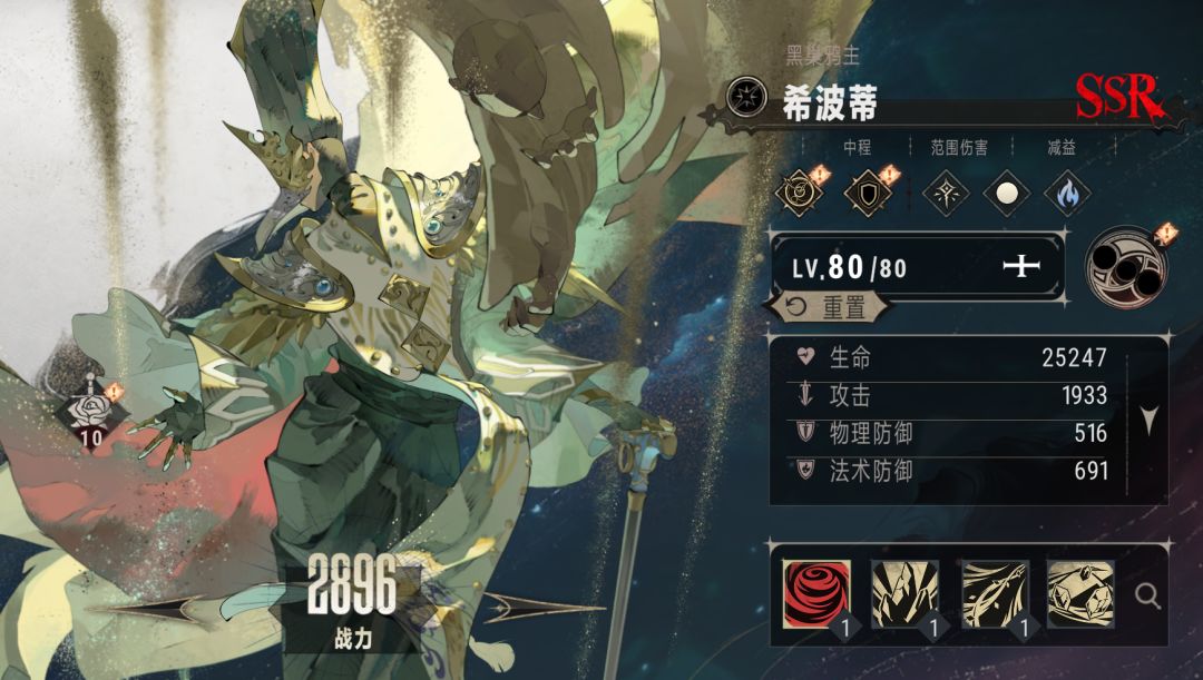 队伍中配置了阿卡贝拉、赛特两名辅助位,阿卡贝拉可通过物理伤害提升、魔法伤害提升、暴击率提升三种增益,还可以通过奥义提升全体血魂回复,加快全队奥义释放频率;阿卡贝拉能补充一定的续航,在此基础上赛特可通过生命回溯、单体治疗,拉好全队血线,范海辛可以持续打伤害。