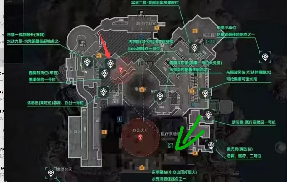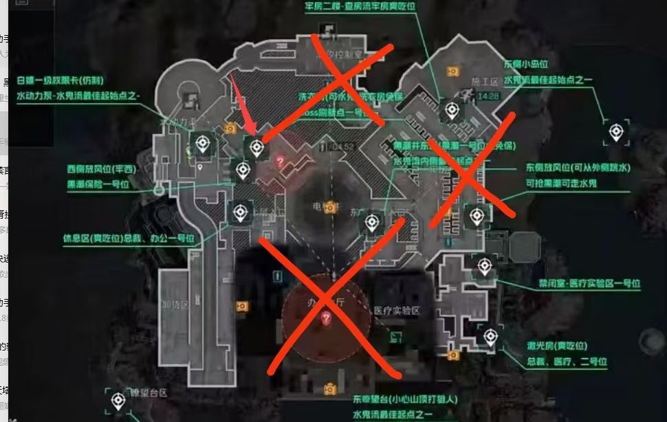 图四:这三个位置肯定是最危险的,典狱长房间还不算危险,起码能跑,办公大厅你是根本跑不掉