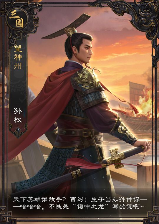 辛弃疾的英魂,注入了孙权体内,在梦中成就了收复中原的霸业。辛弃疾留下的词作精华点化了孙权,使他可以召唤出“青兕·辛弃疾”或“词龙·辛弃疾”来相助。婉约词提升了孙权的智慧,豪放词铸就了孙权的威严。