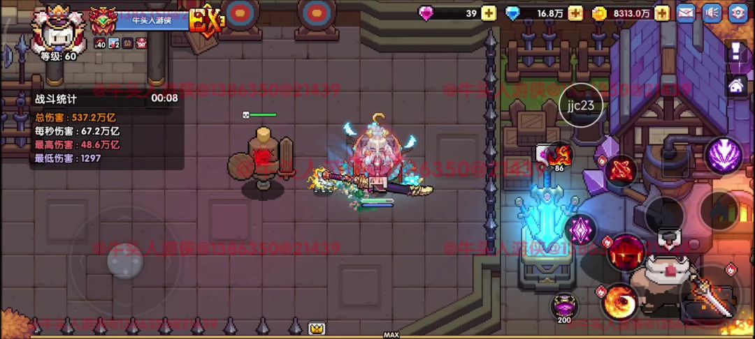 橙技能部分,突袭打法下,必定是40层“焚焰”才释放,能正常打满伤害。