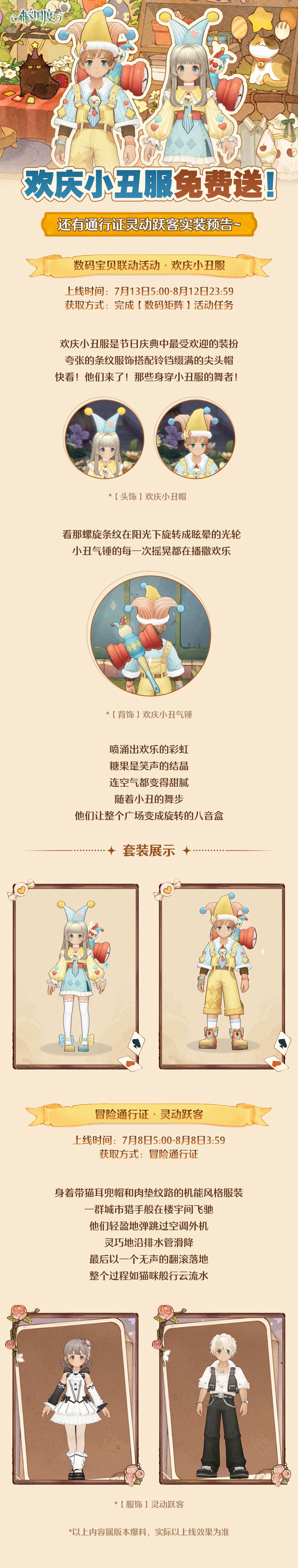 时装上新丨欢庆小丑服免费送!还有通行证灵动跃客实装预告~