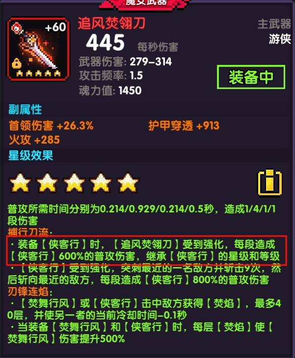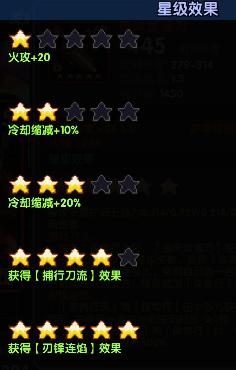 还有就是武器的星级效果,里面有30%cd还是很不错的,这让火刀游侠的cd只要一点点就能满了