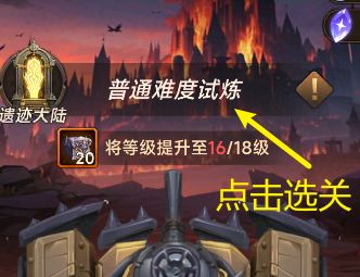 15级拿完全部资源后,会发现打不过主线,这时候去试炼关卡打普通难度试炼。打完试炼,点完红点就能继续推主线了。