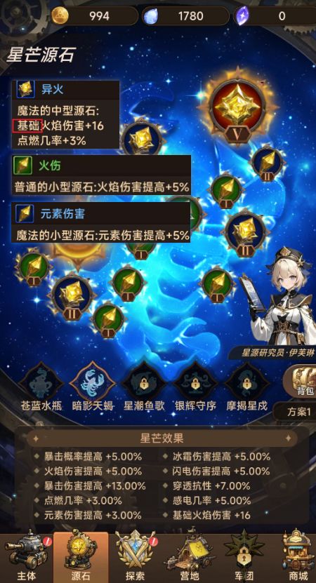 3.源石:检查源石是否选择了火属性,优先选择基础伤、火伤、元素伤,次选暴击、爆伤、攻速
