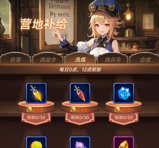 洗炼材料哪里买:营地补给→洗炼,都是用金币买