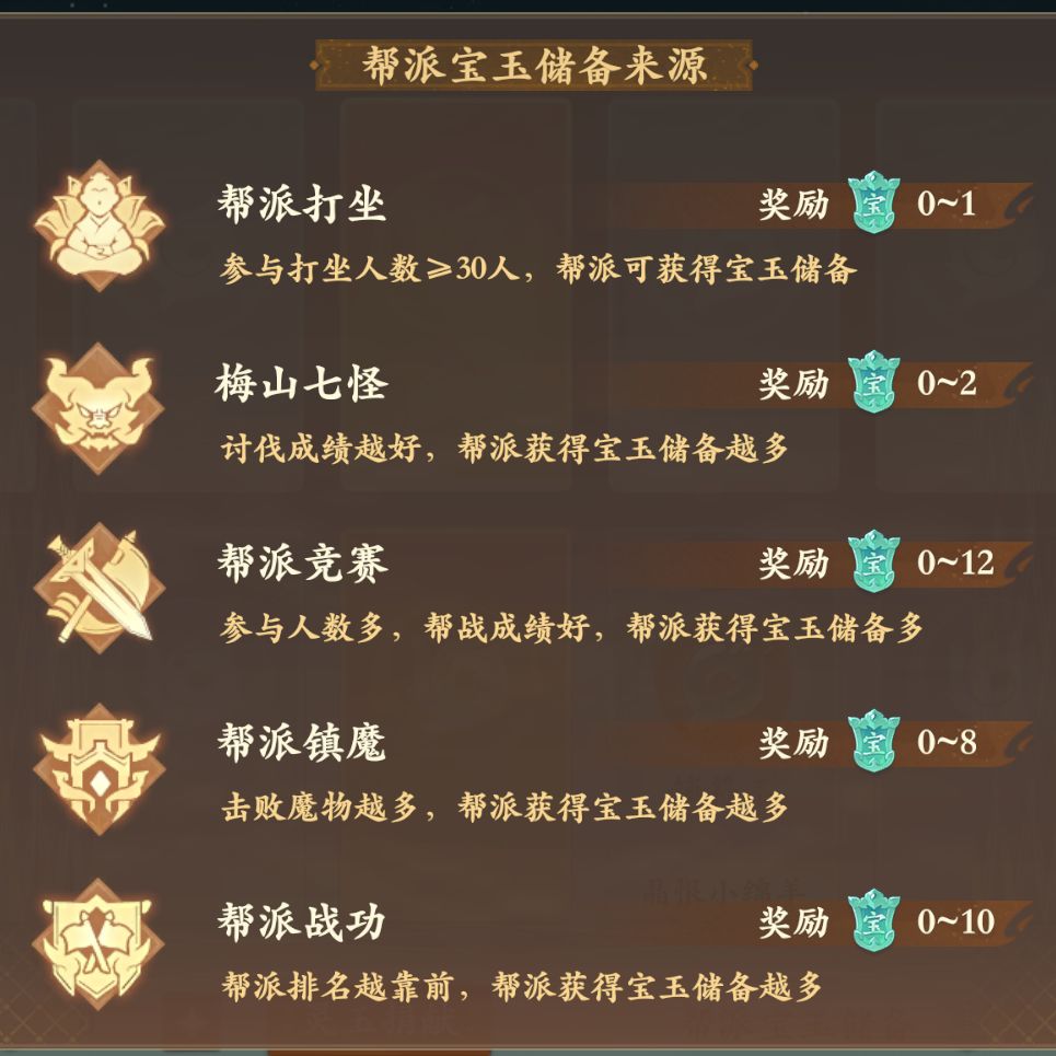 (1)帮派成员积极参与帮派活动,能给帮派增加宝玉储备。