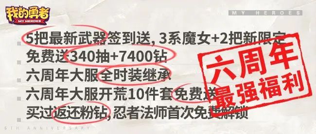 🎁在7月9日6周年庆版本中,有至多340抽+7400钻石!还有开荒、时装继承等福利~