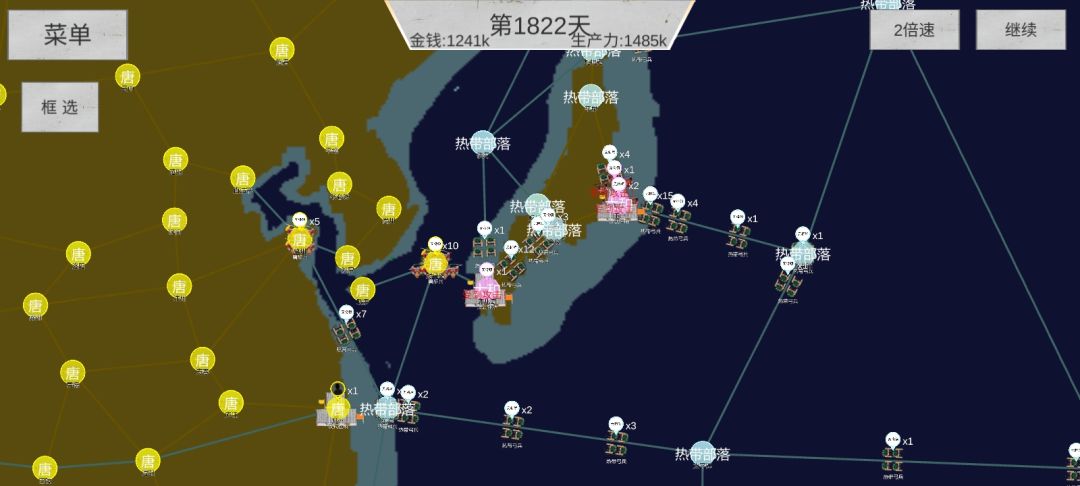 下方的热带部落由大和打(图二),可以不用管,我是800天开始往外打(玛雅从没活过一千天,不建议更晚),然后我就僵住了(图五)(这把其实失误,有座城等级没清掉