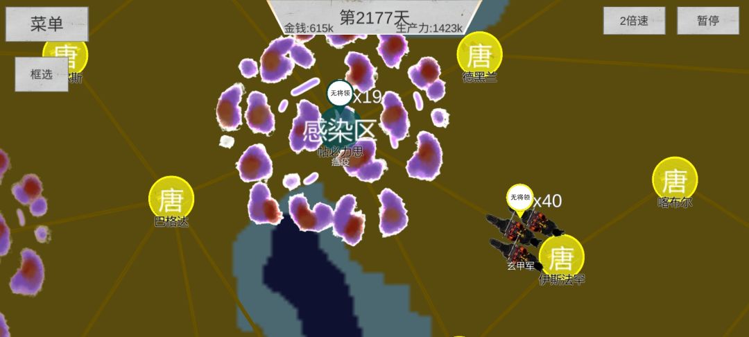 ,牵扯住了我大量兵力)瘟疫一旦起来就很难打。玄甲军低于40队连靠近都做不到(图七)正常应该是一路前推,可以推到巴黎附近,因为丧尸的武将基本会西方消耗掉大部分,我玩了好多把,最多的一次活了7个,最少的一次剩两残血