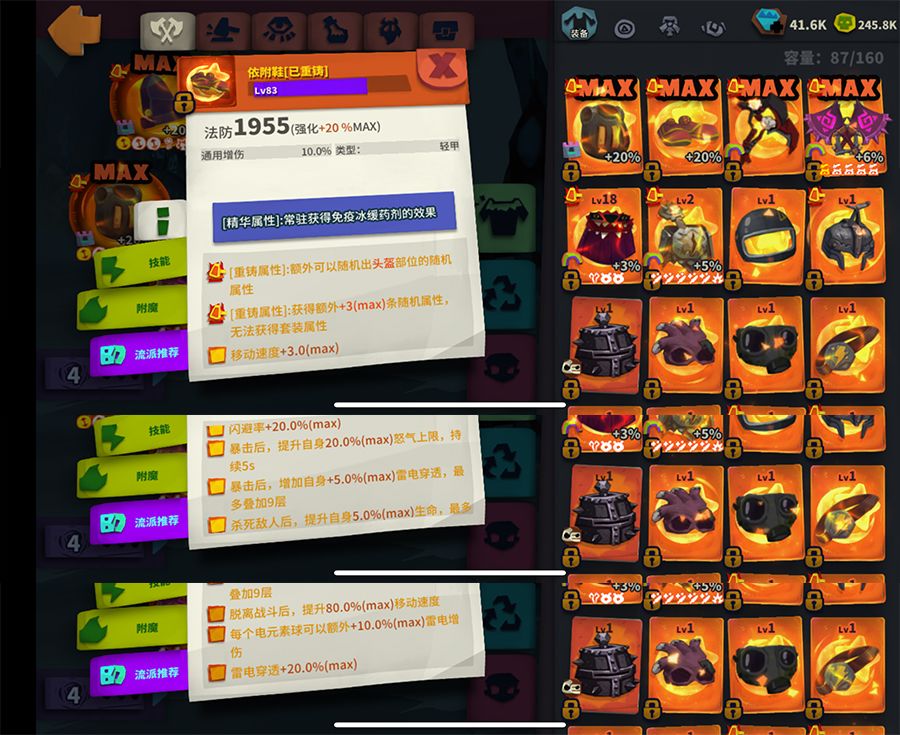 重点属性:依附后的闪避250%(4鞋+天赋刚好满) 吸血1点 攻速拉满10max