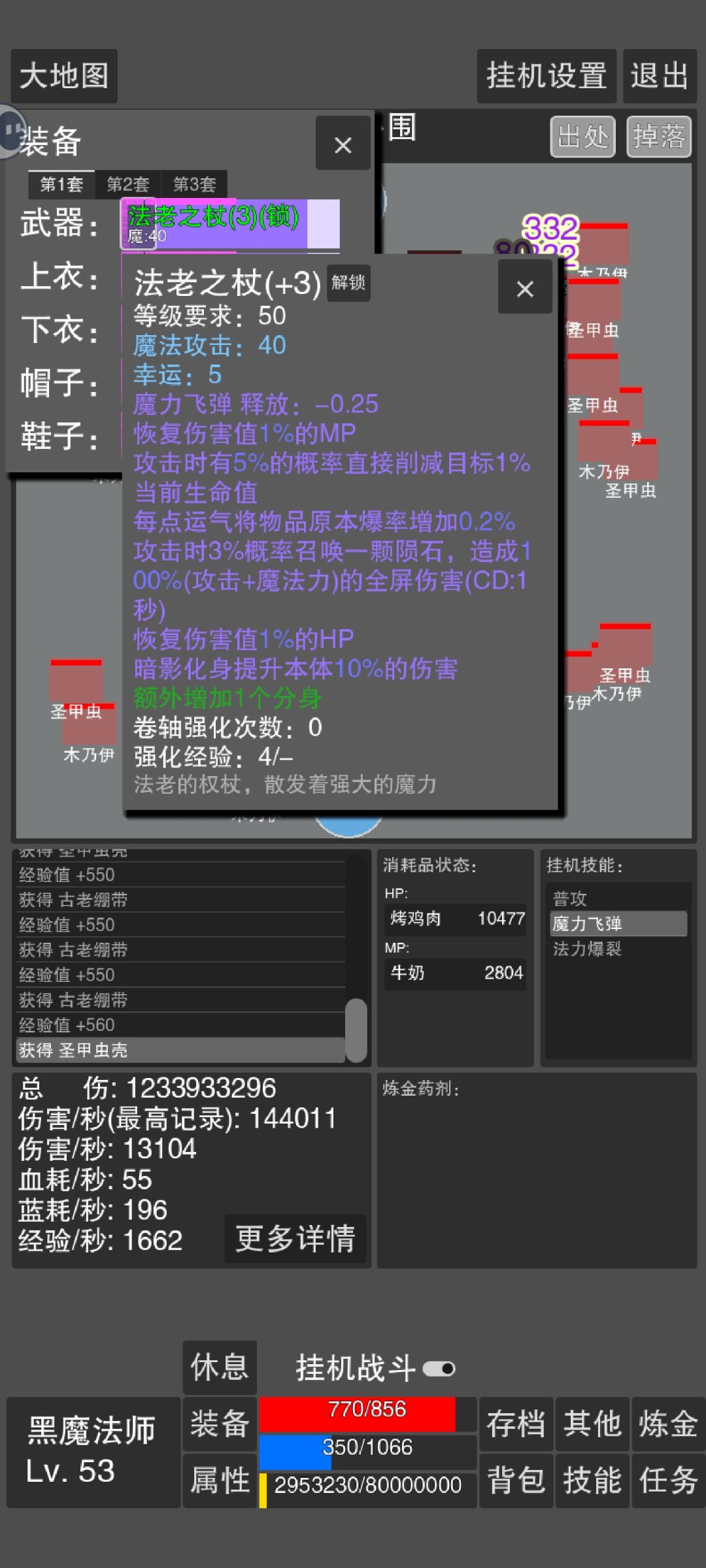 两个职业都是高攻速职业,搭配陨石和致命一击无论是刷经验还是打boss都很轻松,游侠耗药十分严重,不过后期钱用不完也无所谓(48到53级吃了五万多个血药