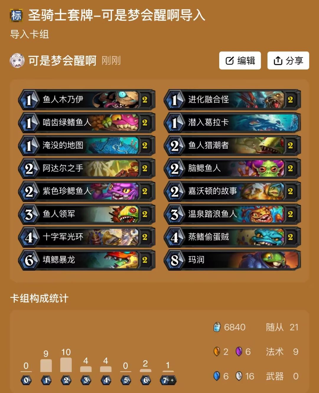 构筑思路:结合了鱼人任务体系和十字军光环等buff在短时间内打出高额爆发。