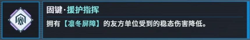 ●战斗开始时获得3导染和3战备,可以让开局第一回合变得非常的舒服,可以直接主动技能2起手,3点导染可以增加倍率和稳态伤害,3层的战备则可以提供指令追加。非常的泛用,比较推荐携带
