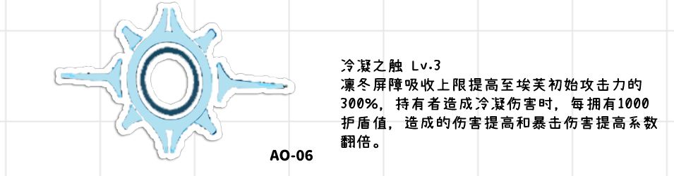 ●持有着造成冷凝伤害的时候每拥有1000护盾提供的增伤和爆伤翻倍,也就是1.5%→3%,1%→2%。在3000点攻击下就是27%增伤和18%的爆伤,因为有爆伤增加的原因,所以总体的伤害提升还是比较明显的。但是纵观下来埃芙的椎体提升没有之气角色那么的夸张,算是可以选择高椎、没能力的玩家也可以抽一只就够用了。