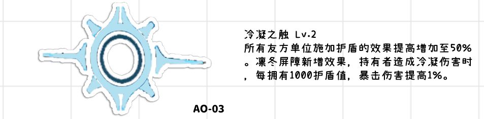 ●凛冬屏障新增:队友造成冷凝伤害时,每拥有1000护盾,提高1%爆伤,假设3000攻击的情况下就是6%的爆伤加成。该椎体算是功能性椎体,护盾量算是提高了手感,提高的爆伤在你能够达到4000攻以上时效果还算不错,但是毕竟专武都能提供10%的爆伤,所以相对来说还是专武直接一点。