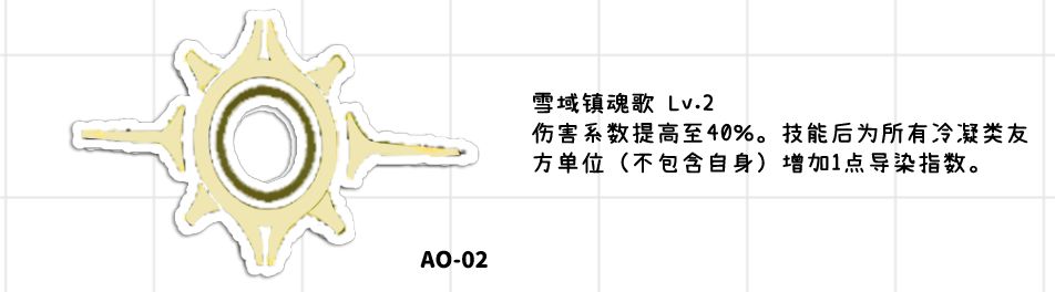 ●液氮毒刺(主动技能2召唤出来的东西)施加寒意(就是血量转的护盾),会产生霜冻地格,持续3回合,是一个比较有效的铺冰地格手段。比较不错的固键,但是由于埃芙的固键都比较优质,所以优先佩戴其他固键,且铺地格可以通过索米和杜莎妮来解决。