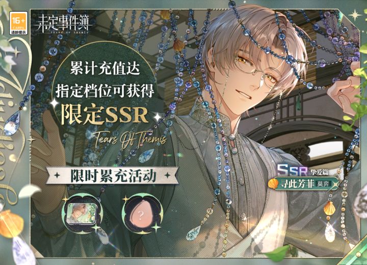 -累充达到398元,即可领取限定莫弈SSR思绪【寻此芳菲】,并可累计获得【女神之泪·情长】×15