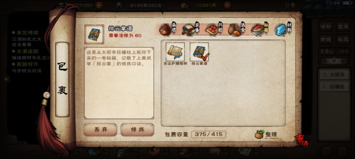 不买的也可以做步惊云任务,学习排云掌,做到大昭寺阶段就可以拓印排云掌学习了