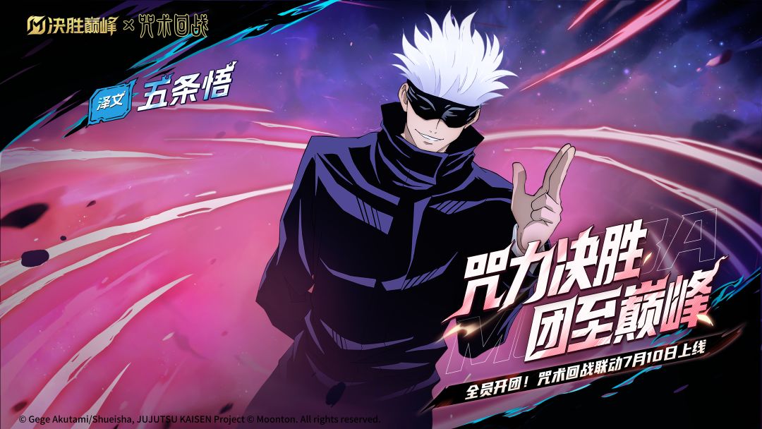 7月10日,《决胜巅峰》×TV动画《咒术回战》将正式开启!泽文全新限时联动皮肤「五条悟」同步上线~