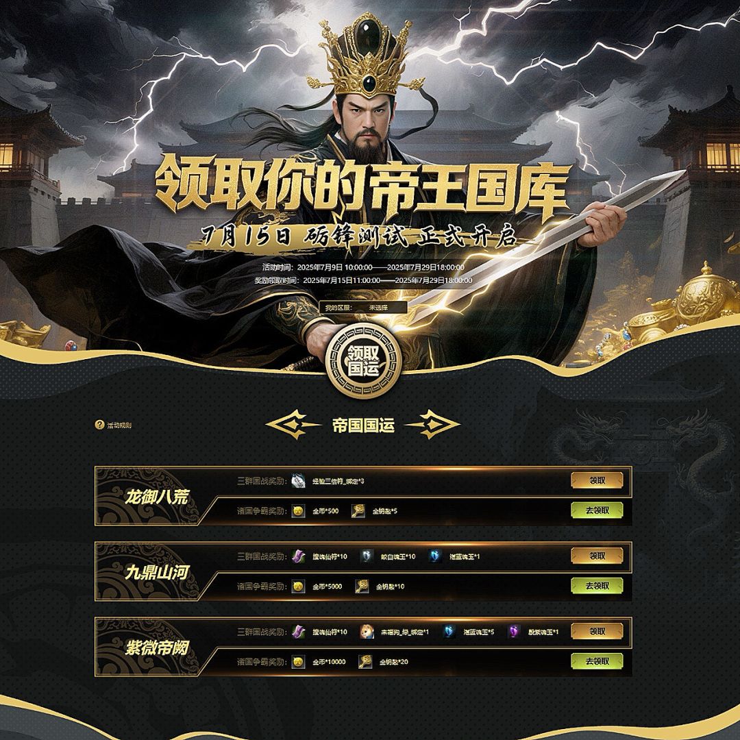 参与预约《诸国争霸》砺锋测试,直领《三国群英传:国战版》【帝王国库·国运豪礼】