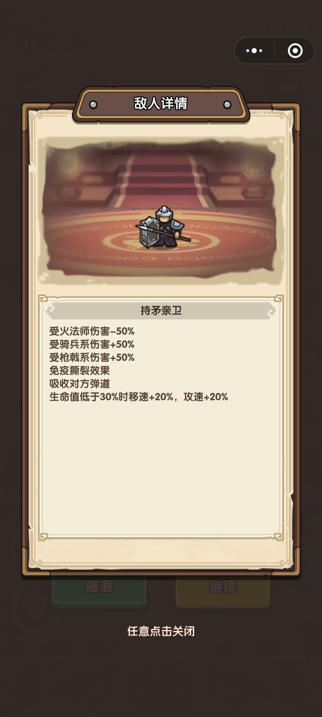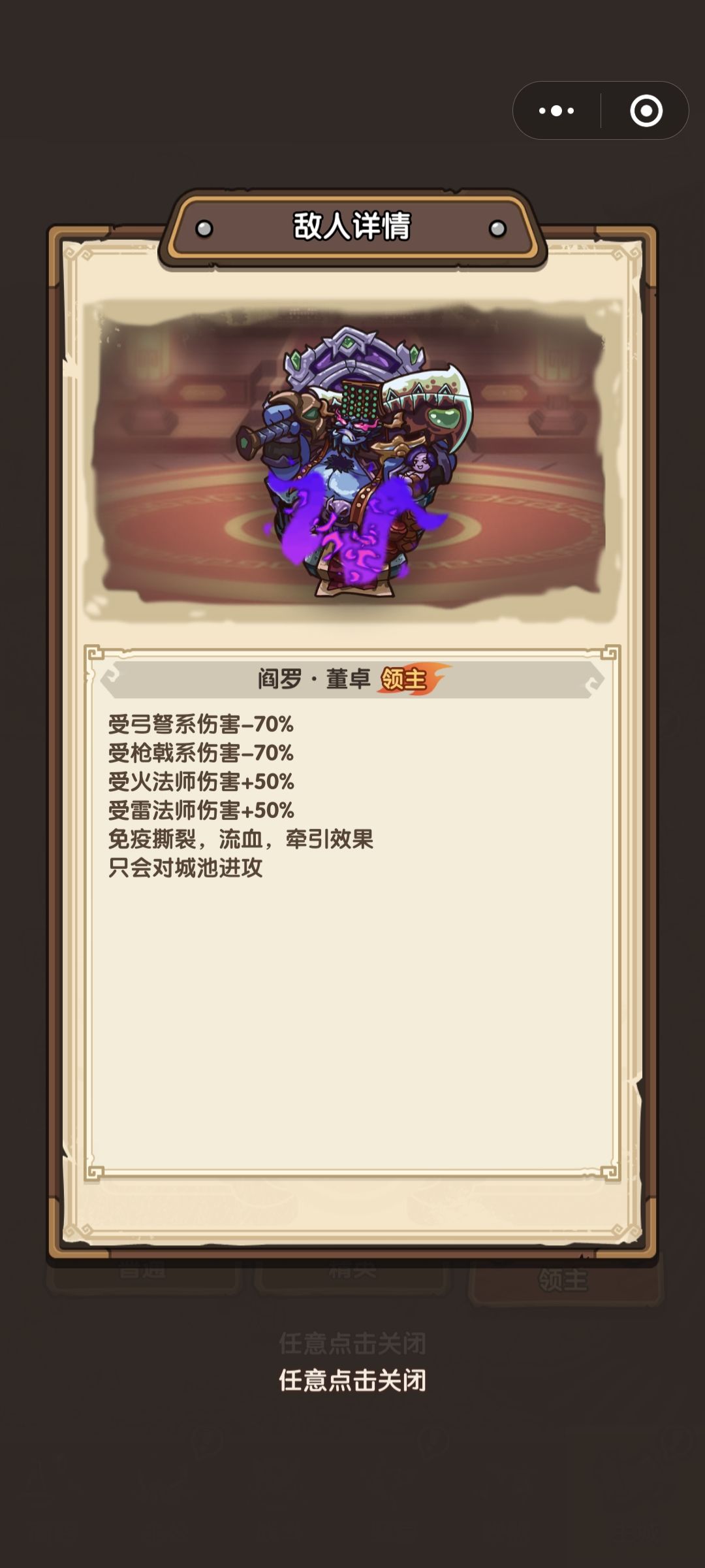 ,这一关会有陷阵死士(受火法和雷法伤害会有增伤)留下盾牌,需要很大的伤害量,很能抗伤,本人呢就用了火法这种范围且高伤的法师(最好带有火球连射,清理前排比较快),但火法只能清理前排,后排会容易聚远程兵。在十级左右时后好几波弩兵出现,很难清理,这时候就需要雷法这种伤害高且能打后排的来清理后排弩兵(盾兵可以用,但反伤有限且想要清理后排很难),在用雷法的同时最好带有雷击数量+1的玉石,在加上连续雷击这个选项时清理后排会非常快。前期尽量多的选择雷法选项,让雷法快速成型,能有效清理前中期的孙坚。后面多去选择火法保证清理前排质量。由于最后会有董卓,需要用雷法的麻痹去控制它,然后先清理其他小兵,最后一定能解决。在其他兵种的选择上需要可以选择盾兵去抗伤和反伤,加上其他的兵种去抗伤、输出、控制都可以。只能把牌选好一定能赢