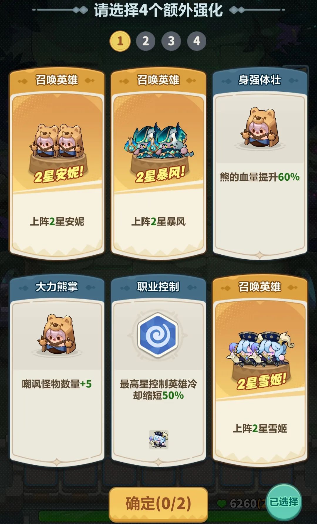 强化种类方面,在原有的英雄专属强化上,新增了“上阵指定2星英雄”以及“城墙回血”词条,策略更丰富!