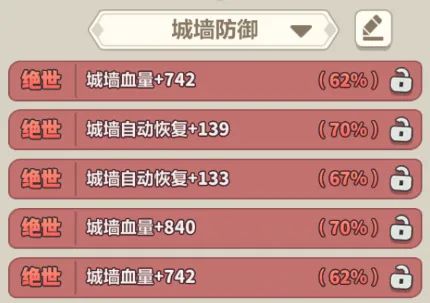个人觉得【城墙血量】的优先级>【城墙自动恢复】,在洗满血量词条后,可以提高约3500-4000的血量上限,能抵挡遗迹巨像2-3次攻击。