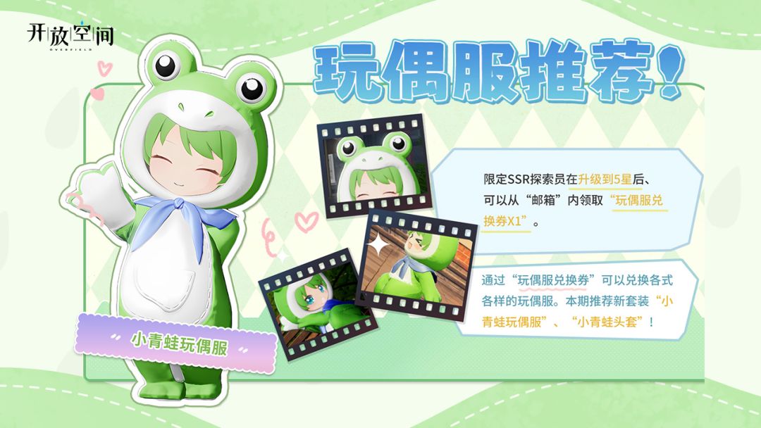 7月11日维护更新后,可通过“玩偶服兑换券”兑换“小青蛙玩偶服”、“小青蛙头套”。