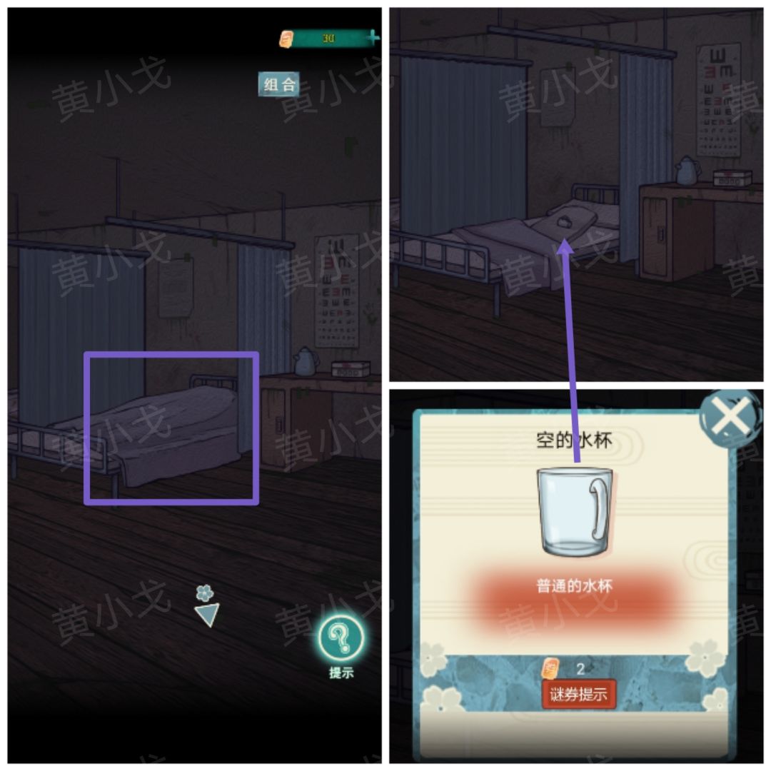 1.掀开第一个床上的被子,获得【空的水杯】
