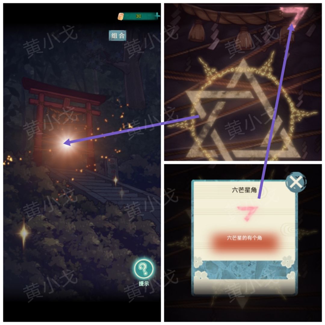 5.点击台阶旁边的木盒,根据鸟居柱子上的符号,调整密码锁