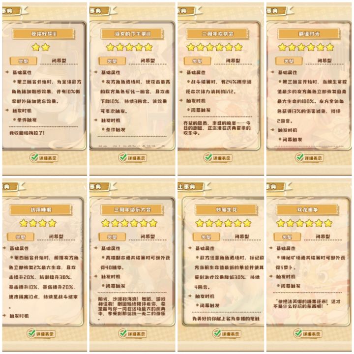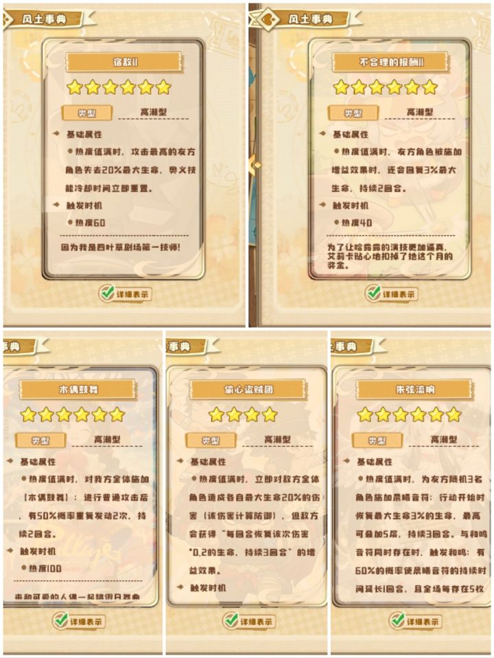 全是我个人的习惯,还有很多了剧照效果其实还没被开发,这些属于我的推荐,其中高潮剧照中朱弦流响是音符队专属剧照,如果你不玩音符队可以用其他的。闭幕有三个周年庆剧照,属于刷材料类。