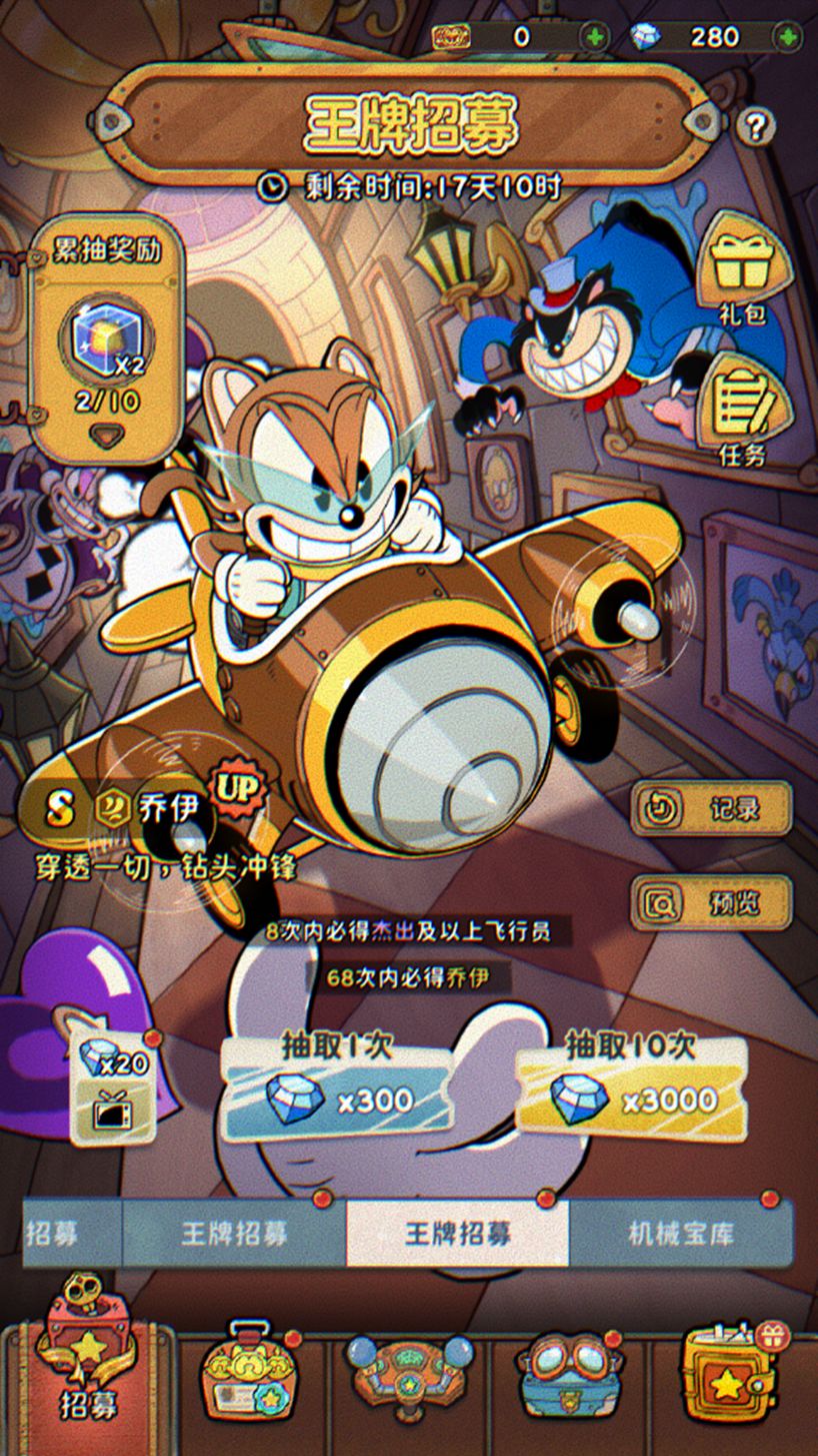 - 小发条提示: 前期最宝贵的钻石,一定要用在王牌招募上,这可是提升你战力的核心投资,如果没有史诗级(S)角色也不要紧,白嫖到高星级杰出级(A)角色,一样实用~
