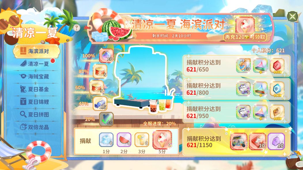 玩家通过参与夏日活动获得道具,捐献道具可获得积分。