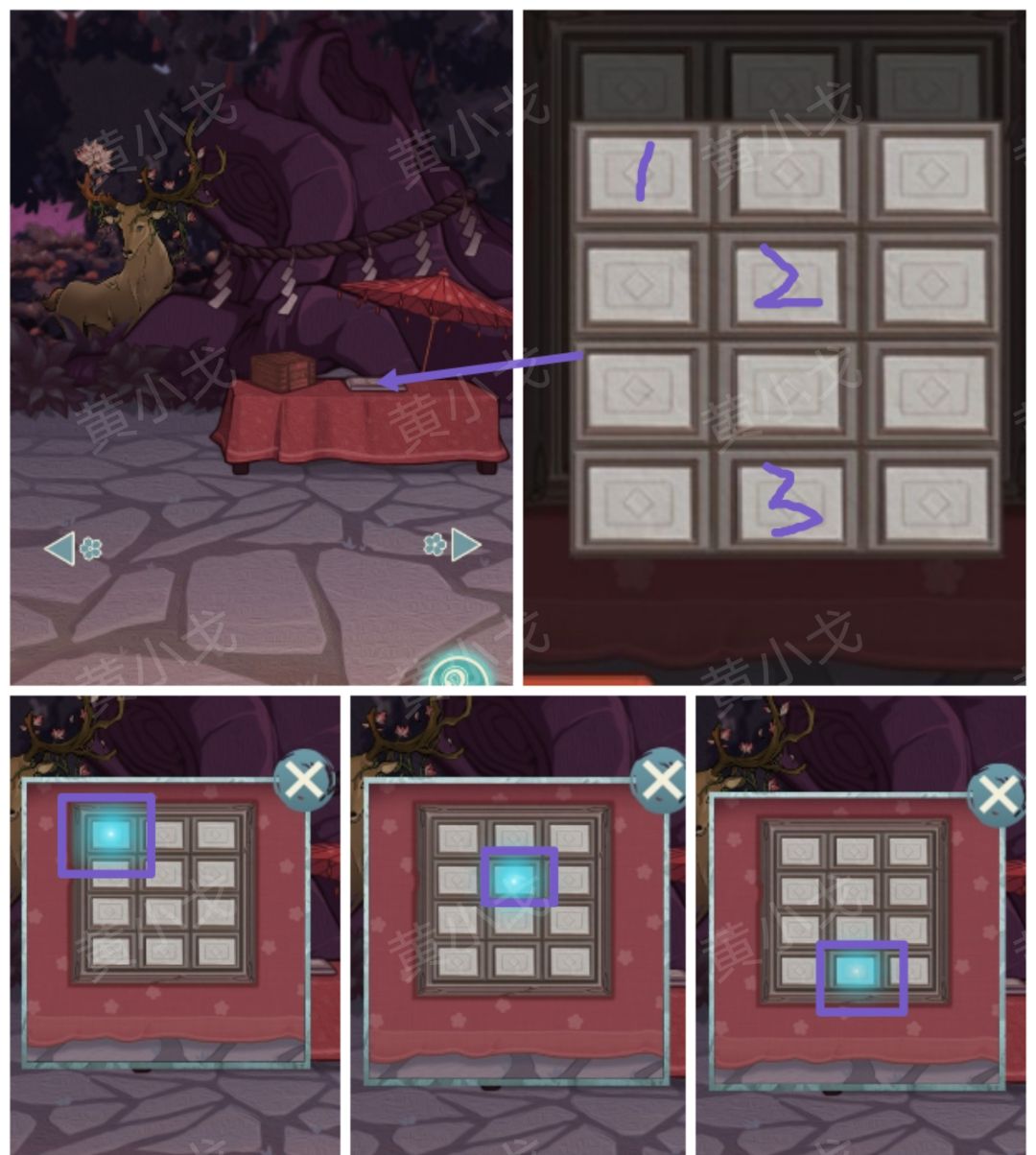 8.点击告示牌,根据灯笼上的符号和伞上的线索,调整告示牌上的机关