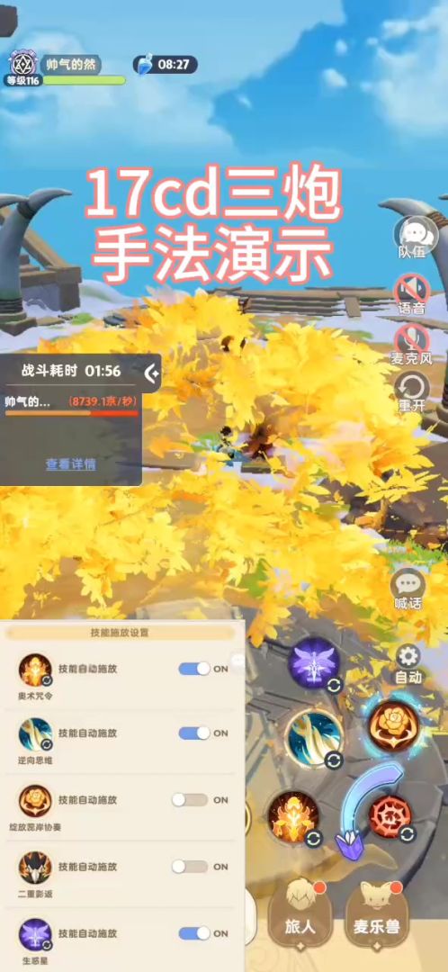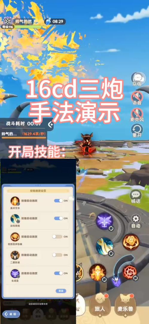 技能搭配操作方法开局自动魔像--开逆向和觉醒--记忆点满了放绽放(技能好了再重复一次绽放冷却剩4秒放逆向的操作)--让第一个觉醒自然转20s 这样开局多放两个绽放和一个觉醒(如视频所示)21秒觉...