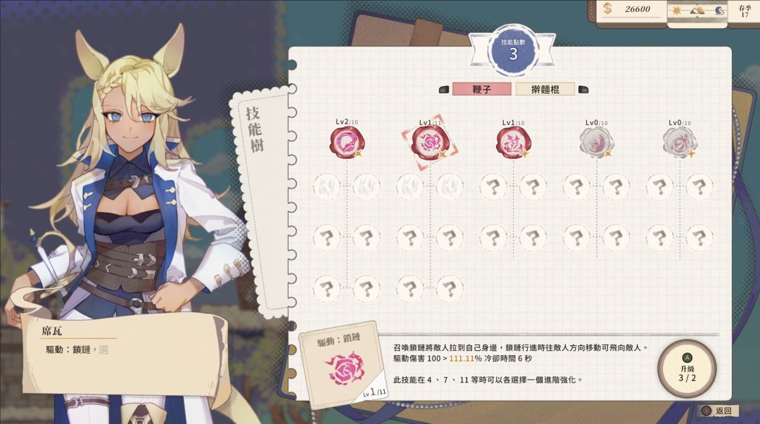 而且战斗的成长还是以局外为主,也有提高战斗加成的徽章系统,在剧情进度的推进骑士团入住后,可以在骑士团中根据武器升级技能,也可以升级基础的天赋。