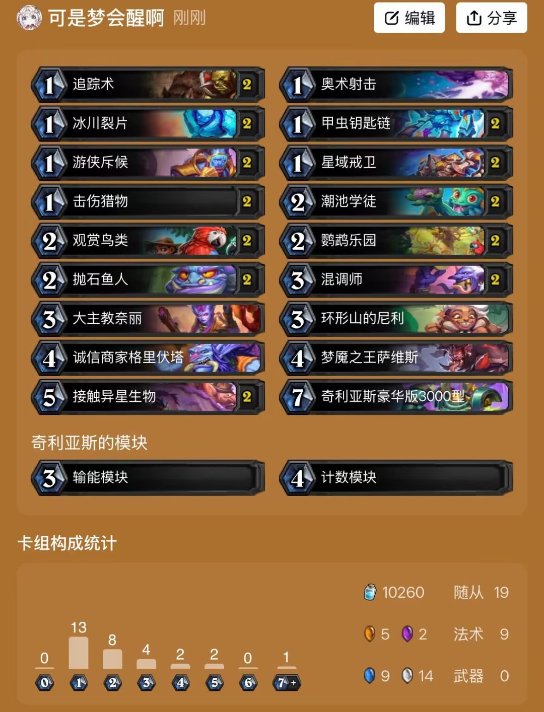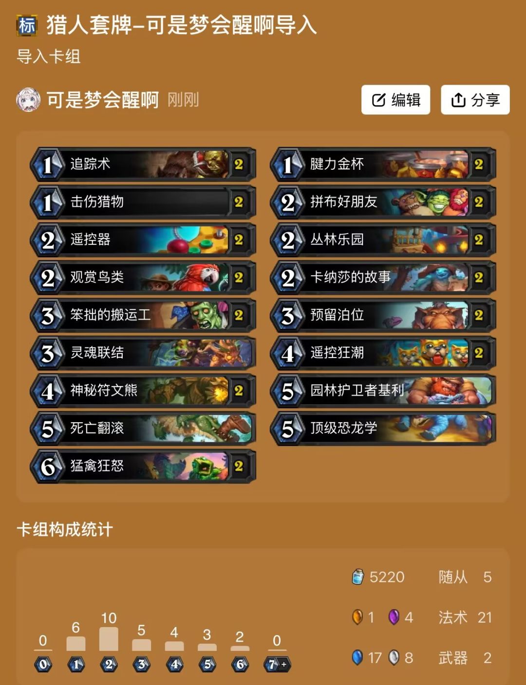 这套试了一下,打快攻卡组,otk卡组比较好打,战士天湖五费下乌龟就很难打。