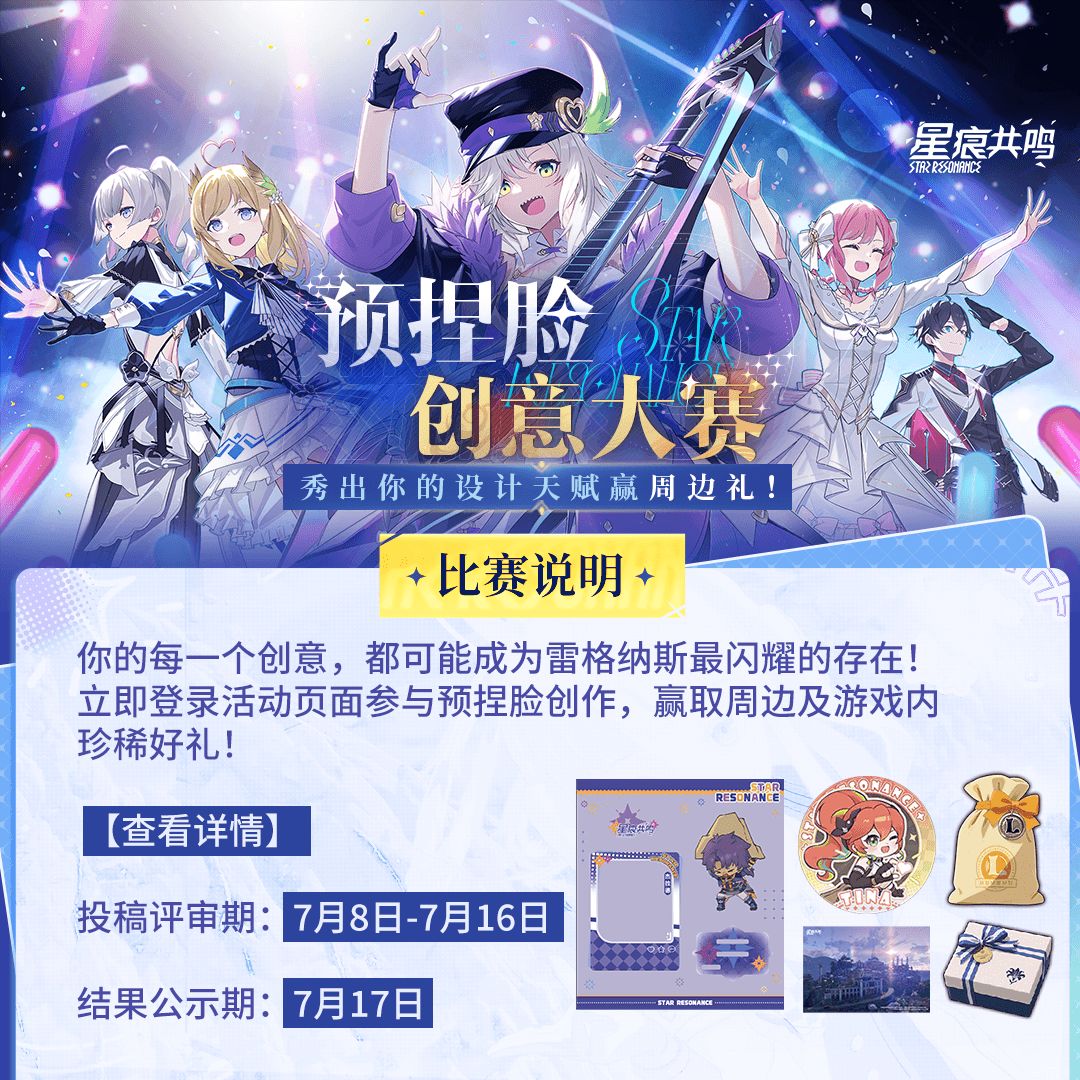 就是现在!快来参加《星痕共鸣》创意捏脸预征集大赛吧!把你的预捏脸方案晒出来~