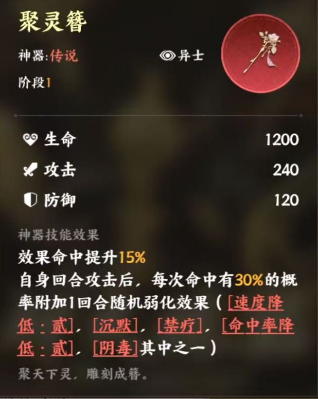 聚灵簪:进一步给敌方附加负面效果,效果命中提升较高
