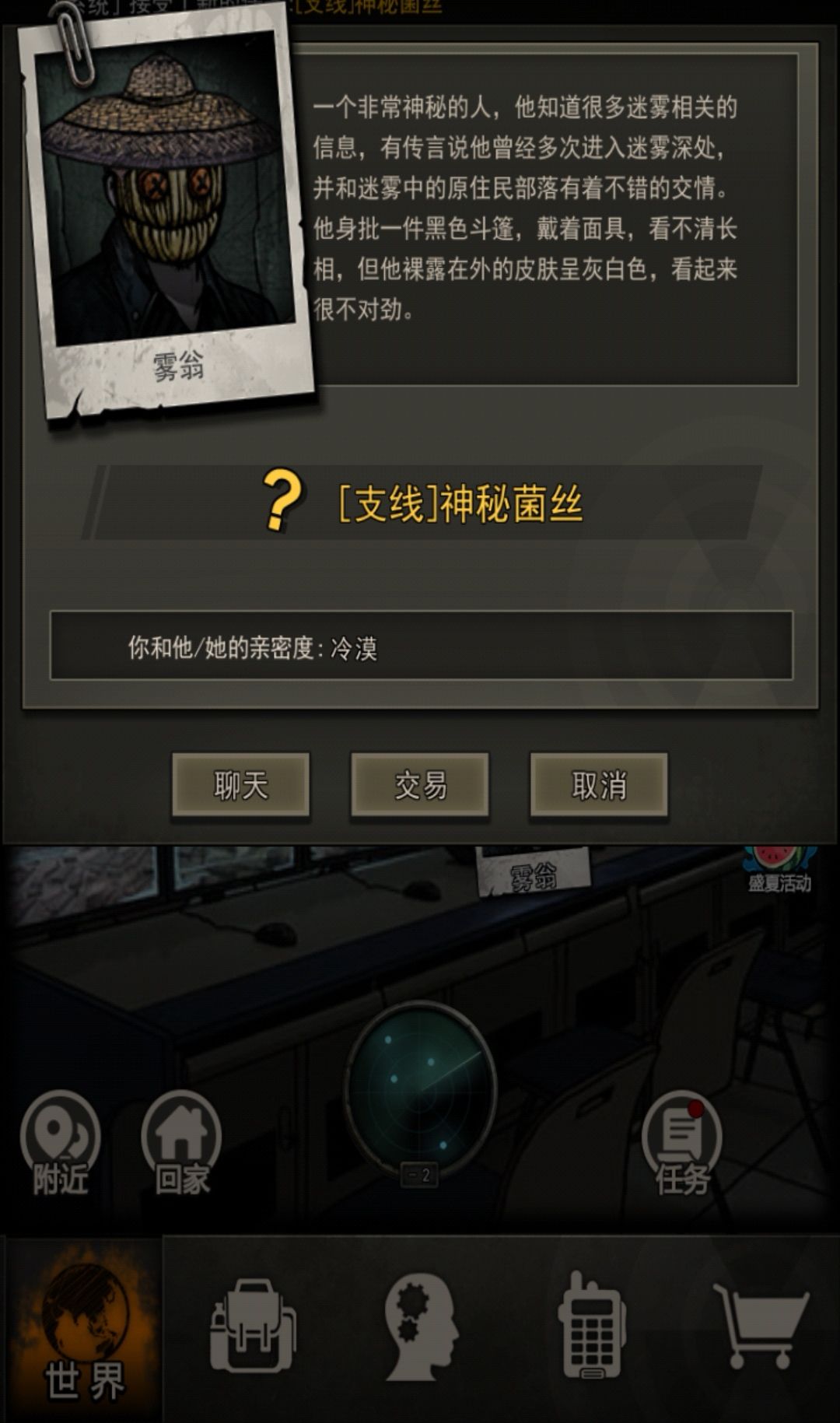 解锁新npc〖雾翁〗,在【图五-控制室】可以看到