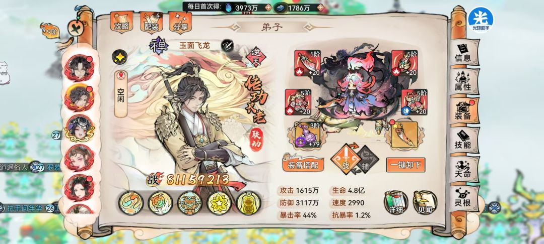 注:没有至尊宝的话可以尝试更换其他弟子,其实女刀效果更好(作者养不起),韩立、云瑶也是可以的。