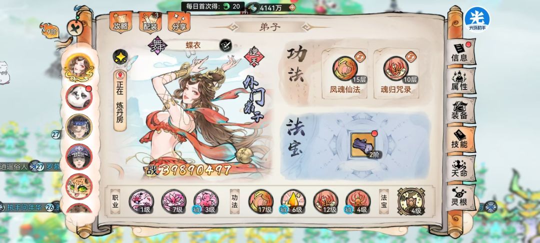 法宝:pvp法宝即可(本命技能中有叶子可以带叶子)