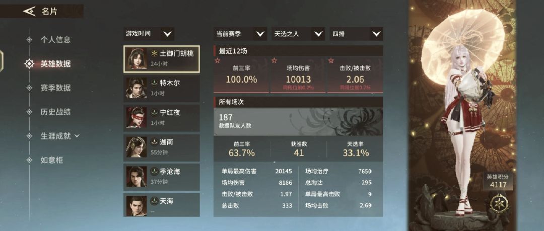 - 季沧海:单挑强劲,技能附带灼烧效果。