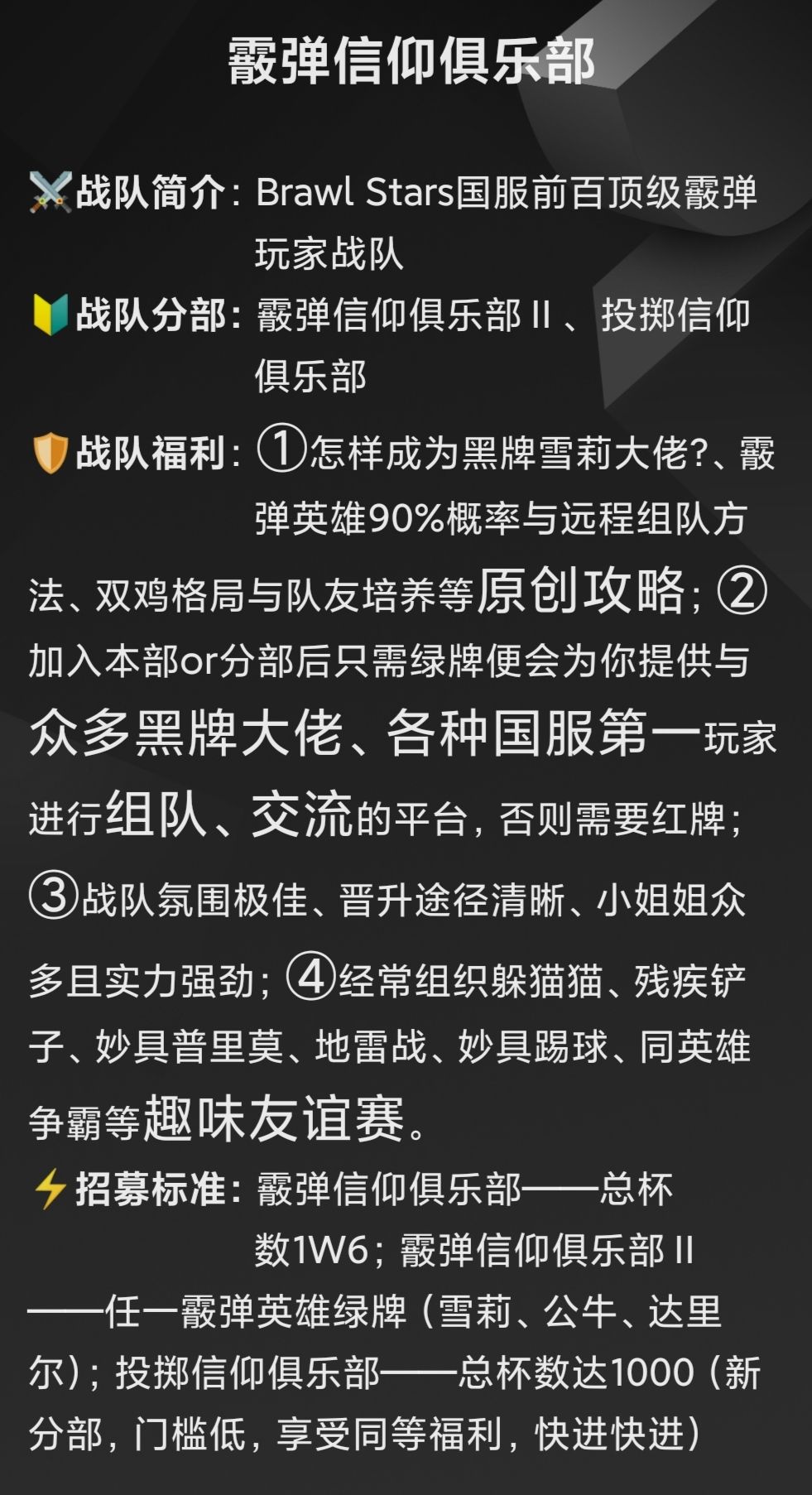 霰弹信仰俱乐部 Brawl Stars国服前百顶级霰弹玩家战队 我是队长Z_233 欢迎加入