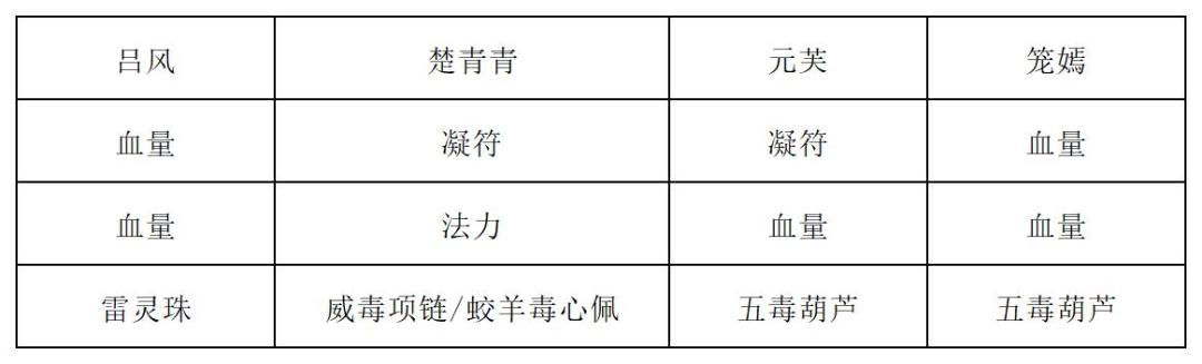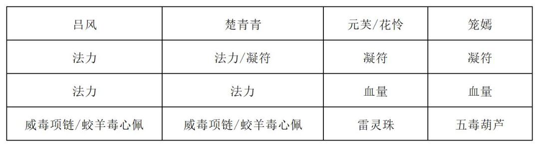 第二回合:吃法力丹,楚青青对刀妖打出玄天幽藤符和玄藤符(如果带的是凝符),接着吕风、元芙/花怜和楚青青打出清水咒击杀三个令牌,元芙/花怜打出玄天生长符,吕风复制玄天生长符并打出,楚青青打出归一决。