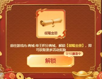 解锁【御赐金册礼包】,+300分,仅限完成一次