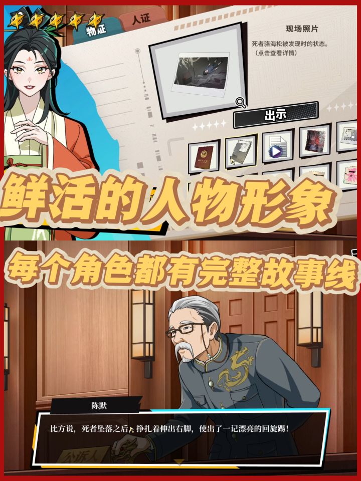 玩家将扮演一位新手律师,与老练的律师伙伴一起在中式鬼宅,淳朴乡村,高科技研究所,矿坑公园,世界运动会场,馆世界高楼中探索一场场凶杀案。