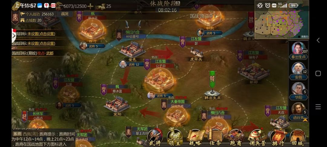 越:12城在手,会稽稳如泰山,趁秦齐鏖战疯狂扩张,已成第三极势力。赵:7城虽少,但长平天险仍在,若能联合燕、楚残部,或可牵制齐秦。楚:6城苟延残喘,但霸王茶姬的游击战术让秦军头疼不已,未来或成不死小强。