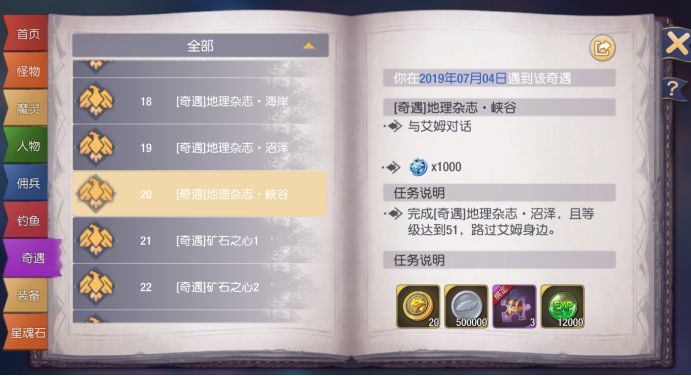 注意事项:完成奇遇19任务后,去咆哮峡谷-芳汀旁边找到艾姆(冒险之书-任务-芳汀拜访可自动寻路)。
